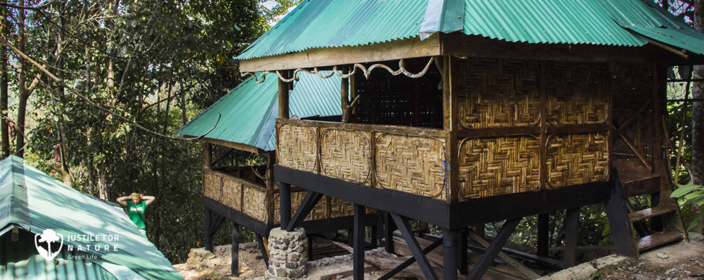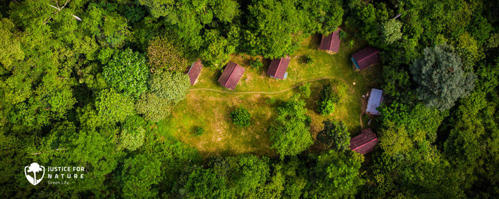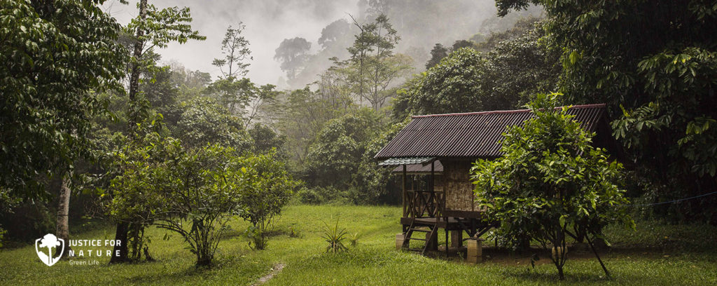 Ubytování v pralese je ve dřevěnobambusových chatkách. Spí se na zemi na matracích. Doporučujeme vzít si karimatky pro měkčí spaní. Tábory v rezervaci jsou dva, Green Camp I. a Green Camp II. Každá dobrovolnická skupina bude rozdělena po příjezdu na dvě menší skupinky, které se rozdělí do táborů I. a II. V táborech je suchá záchod (latrýna), koupelna je řešena v pralesním potoce. Kuchyně v obou kempech jsou plně vybaveny. Vaří se na plynovém sporáku. Pitná voda teče v potoce. Samozřejmostí je společenská místnost.